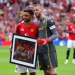 The entire stadium erupted in cheers as supporters paid homage to the 34-year-old Spanish star ahead of Fiorentina’s friendly match against Manchester United last weekend. The game ended in a thrilling 1-1 stalemate, with the hosts clinching victory via a 5-4 penalty shootout. As a highlight of the ceremony, De Gea was presented with a commemorative award by his ex-colleague and the team’s skipper, Bruno Fernandes, symbolizing years of shared triumphs.