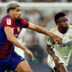 Heading into this highly anticipated El Clasico, one of the most compelling battles might involve Barcelona’s central defender Araujo and Real Madrid‘s dynamic winger Vinicius Jr. Both athletes have had inconsistent appearances this season but are slated to start in their teams’ lineups over the weekend.